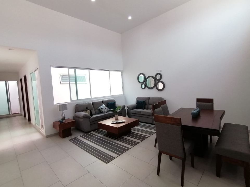 Un ambiente agradable y confortable con doble altura